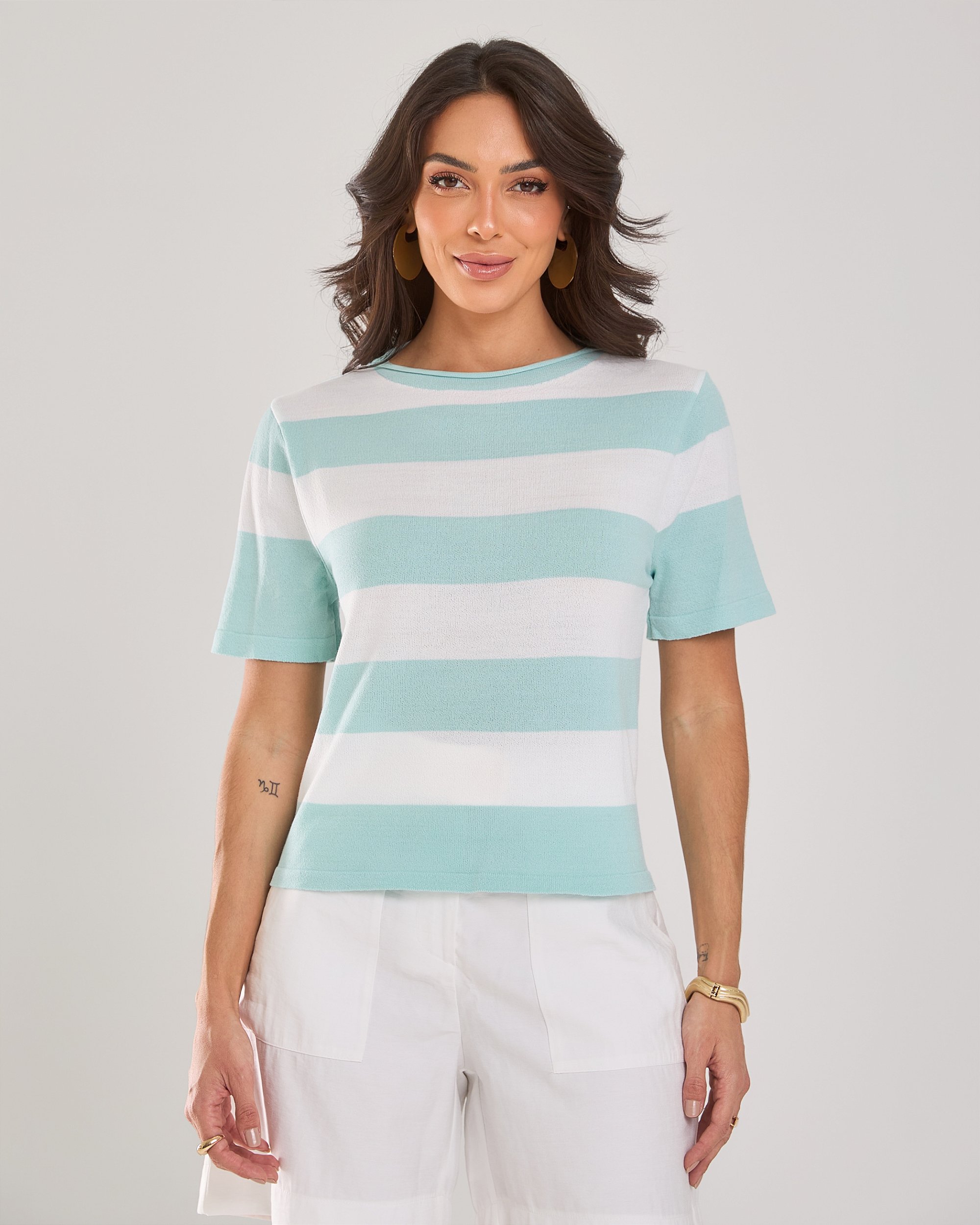 O clássico das listras com o toque premium do tricot modal! Macia, leve e super versátil, essa blusa cria um visual sofisticado e versátil.
