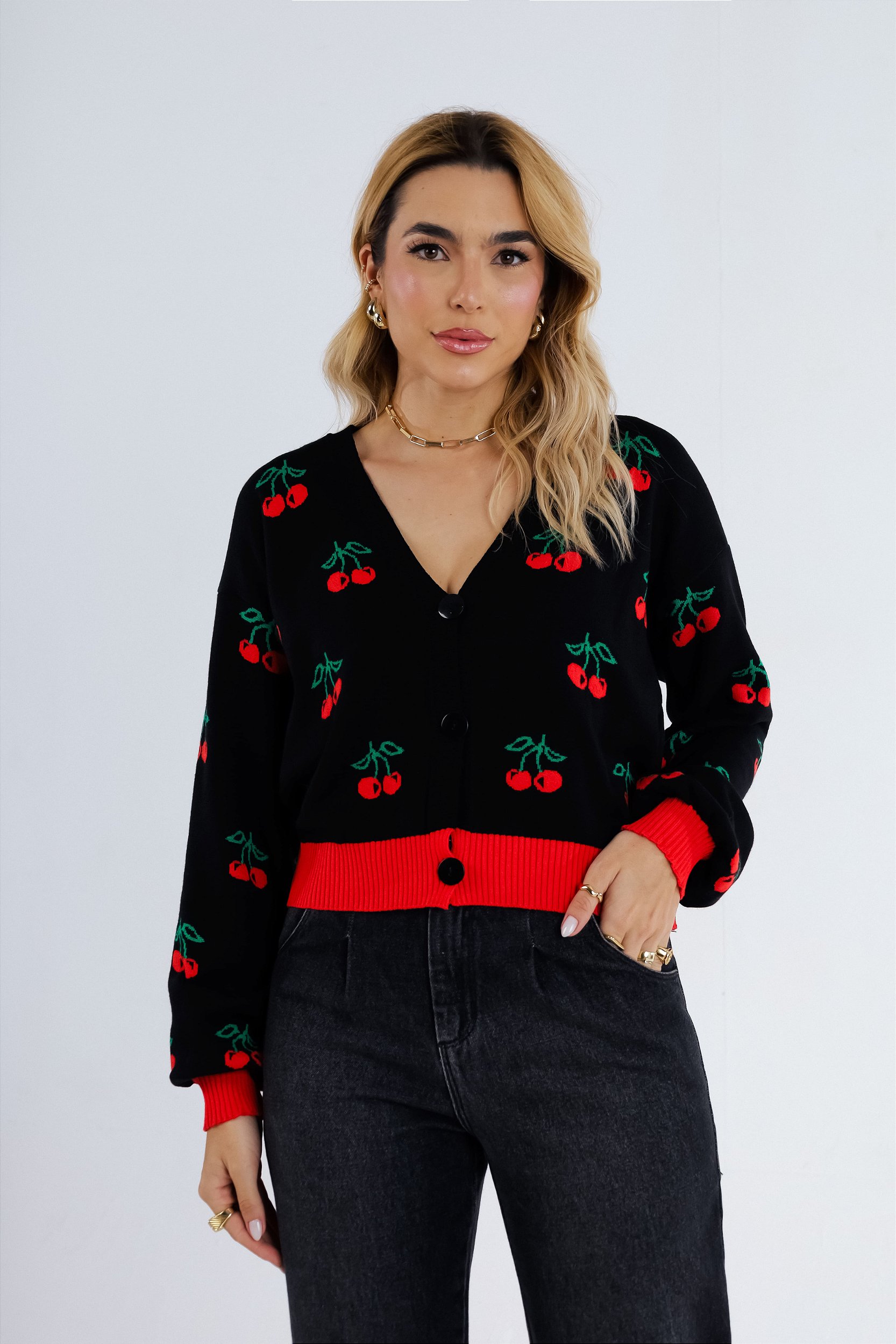 Casaco em modal duplo, estilo bomber, com estampa tendencia em cerejas, botoes funcionais, fique estilosa e quentinha nesse inverno!
