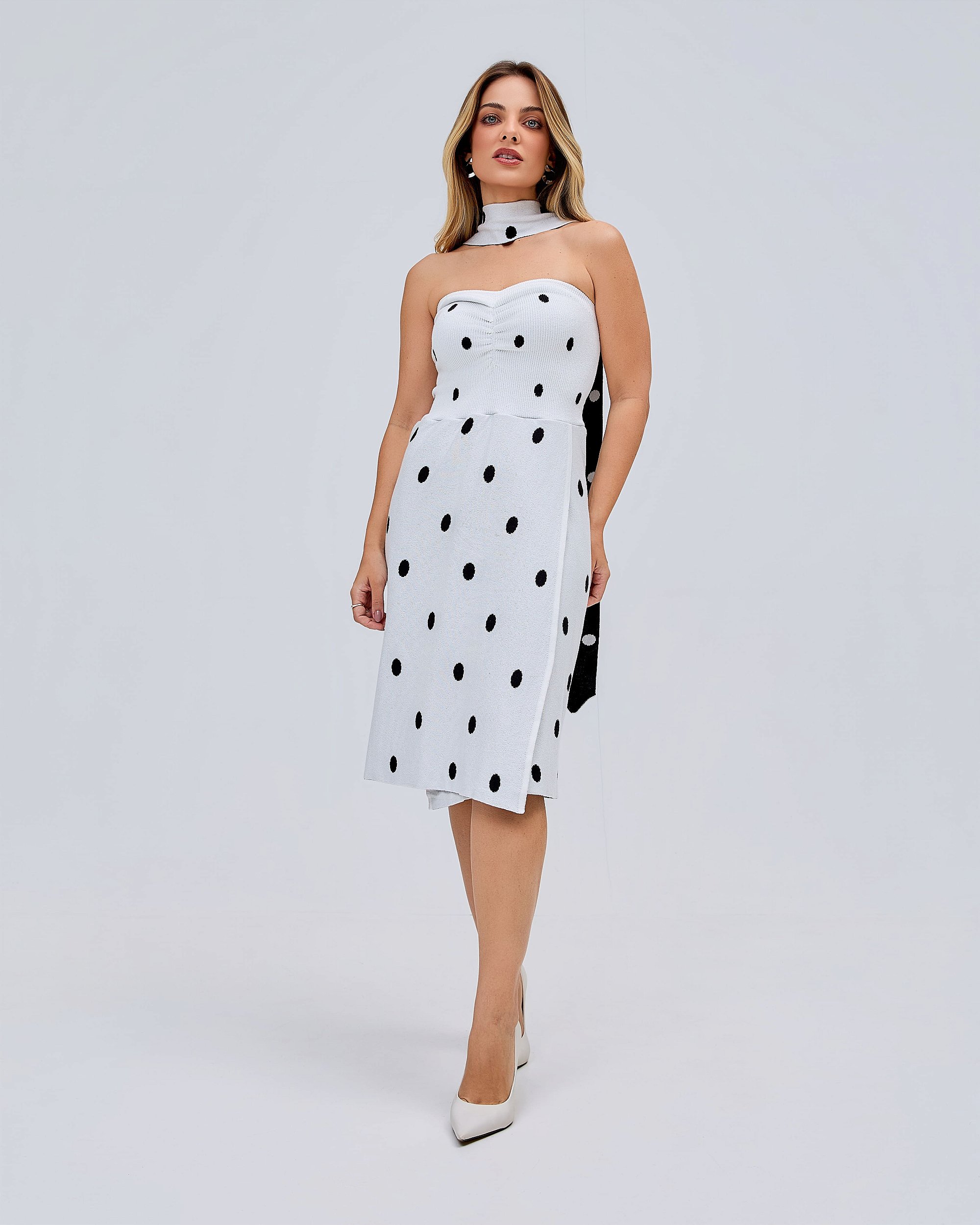O poá, tendência atemporal que voltou com tudo, traz um toque retrô e sofisticado ao visual. A faixa avulsa permite diferentes formas de uso — na cintura, no pescoço ou como detalhe nos ombros — deixando a peça ainda mais versátil. Um vestido elegante, moderno e cheio de charme, perfeito para quem ama se destacar com estilo e conforto.